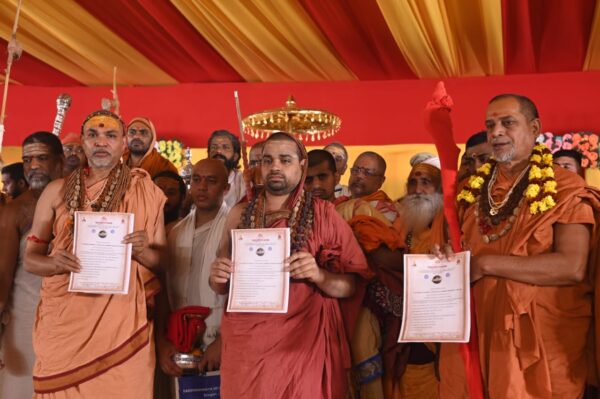 महाकुम्भ में देश के तीन पीठों के शंकराचार्यों ने पहली बार मंच साझा किया है। महाकुम्भ में चल रही परम धर्म संसद के शिविर में तीन पीठों के शंकराचार्यों ने समवेत रूप से एक संयुक्त धर्मादेश भी जारी किया है। श्रृंगेरी शारदा पीठाधीश्वर जगतगुरु शंकराचार्य स्वामी विधु शेखर भारती जी, द्वारका शारदा पीठाधीश्वर जगतगुरु शंकराचार्य स्वामी सदानंद सरस्वती जी और ज्योतिष पीठाधीश्वर शंकराचार्य स्वामी अविमुक्तेश्वरानंद सरस्वती जी महाराज ने परम धर्मसंसद में हिस्सा लिया और सनातन संस्कृति की रक्षा और उन्नयन के लिए 27 धर्मादेश भी जारी किए। इस अवसर पर शंकराचार्य स्वामी सदानंद ने संस्कृत भाषा के महत्व पर जोर दिया। श्रृंगेरी के शंकराचार्य विदुशेखर भारती ने गौ माता को राष्ट्र माता घोषित करने और गौ माता की विशेष रूप से रक्षा करने की बात कही। ज्योतिषपीठ के शंकराचार्य स्वामी अविमुक्तेश्वरानंद ने संस्कृत भाषा के महत्व पर जोर देते हुए सरकार को संस्कृत भाषा के लिए बजट देने पर जोर दिया।