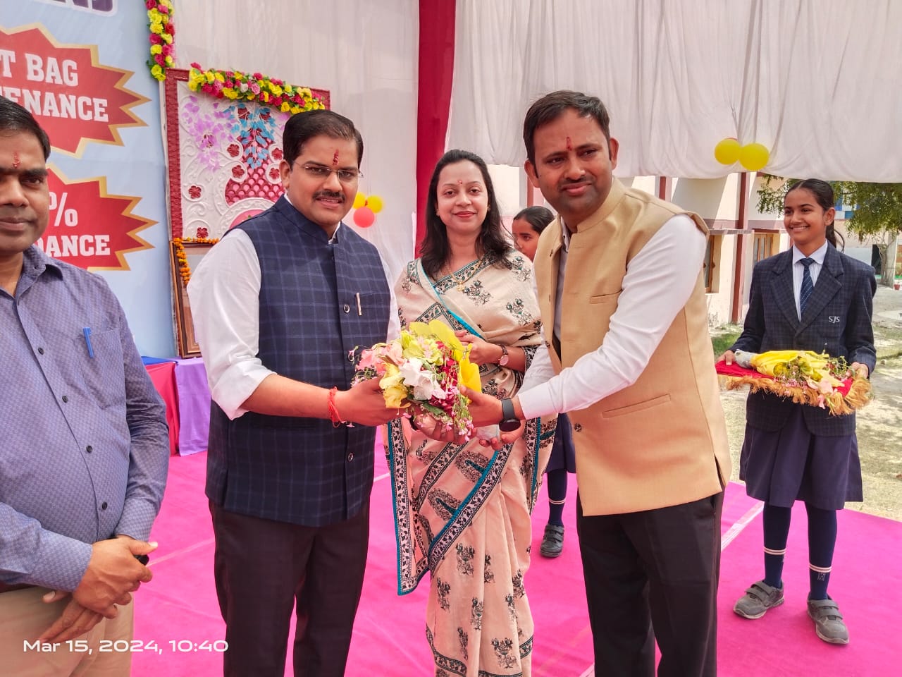 अमेठी जनपद मुख्यालय गौरीगंज स्थित एस .जे .एस पब्लिक स्कूल में वार्षिक परीक्षा परिणाम की घोषणा के अवसर पर विद्यालय में रंगारंग कार्यक्रम छात्र एवं छात्राओं द्वारा प्रस्तुत किए गए । संजय तिवारी बेसिक शिक्षा अधिकारी अमेठी के कर कमलों द्वारा फीता काट कर कार्यक्रम का शुभारंभ किया गया। विद्यालय प्रबंधक अनुज सिंह एवं प्रबंधिका श्रीमती प्रियंका सिंह के द्वारा मां सरस्वती की प्रतिमा पर माल्यार्पण किया गया । कार्यक्रम का प्रारंभ मां सरस्वती वंदना के साथ हुआ। साथ ही अनेक सांस्कृतिक कार्यक्रम भी बच्चों द्वारा प्रस्तुत किए गए जिन्हें देखकर अभिभावकों का हृदय गदगद हो गया। बच्चों के मनोभाव एवं उनके कार्यक्रम को देखकर विद्यालय में उपस्थित समस्त अभिभावक अपने बच्चों के उज्जवल भविष्य की कामना करते हैं। विद्यालय के परीक्षा परिणाम को लेकर बच्चों एवम् अभिभावकों में उत्साह देखने को मिला । विद्यालय में कक्षा नर्सरी से कक्षा 9वी तथा 11वीं का परीक्षा परिणाम घोषित किया गया। कक्षा में प्रथम , द्वितीय व तृतीय स्थान प्राप्त वाले सभी छात्र एवं छात्राओं को प्रमाण पत्र एवं मेडल देकर सम्मानित किया गया। विद्यालय प्रबंधक अनुज सिंह जी एवम् प्रबंधिका श्रीमती प्रियंका सिंह ने बच्चों को मेडल पहनाकर उन्हें सम्मानित किया । साथ ही साथ अपने भाषण में उन्होंने अभिभावकों से उनकी शिकायतों एवं सुझावों को सुना तथा उनका निदान करने के लिए कहा। विद्यालय की शिक्षा व्यवस्था को उन्नत बनाने के लिए उन्होंने अध्यापकों को प्रेरित किया। तथा विद्यालय प्रबंधिका श्रीमती प्रियंका सिंह भी शिक्षा व्यवस्था को लेकर सजग दिखी और उन्होंने विद्यालय में उत्कृष्ट शिक्षा उपलब्ध करवाने का आश्वासन दिया । कार्यक्रम के अंत में विद्यालय की प्रधानाचार्य श्रीमती सबा कौसर सिद्दीकी ने बच्चों को उनके उज्जवल भविष्य की कामना करते हुए उन्हें आशीर्वाद दिया तथा अभिभावकों को भी बच्चों की शिक्षा के प्रति सजग होने की प्रेरणा दी ।