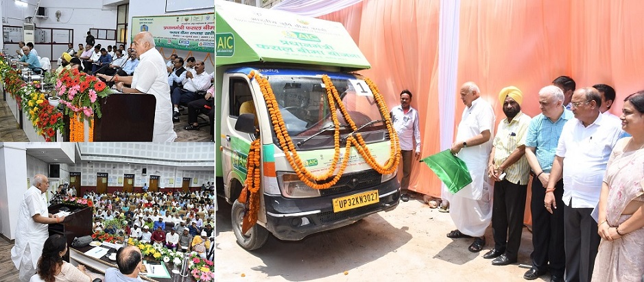 भारत सरकार के कृषि एवं किसान कल्याण मंत्रालय, कृषि सहकारिता एवं किसान कल्याण विभाग की ओर से संचालित फ्लैगशिप योजना ‘‘प्रधानमंत्री फसल बीमा योजना’’ के व्यापक प्रचार-प्रसार करने, योजना के प्रति कृषकों की आशंकाओं के समाधान करने एवं योजना में कृषकों की भागीदारी बढ़ाने के उद्देश्य से कृषि भवन लखनऊ में एक राज्य स्तरीय कार्यक्रम का आयोजन किया गया। कार्यक्रम का उद्घाटन सूर्य प्रताप शाही मा० कृषि मंत्री जी उत्तर प्रदेश सरकार द्वारा किया गया। योजना की जागरूकता का कार्यक्रम प्रदेश में पूरे जुलाई माह में चलाया जाएगा।