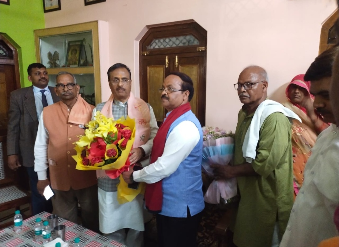 बीजेपी कार्यकर्ताओं ने रामचरितमानस भेंट कर किया पूर्व डिप्टी सीएम का स्वागत।