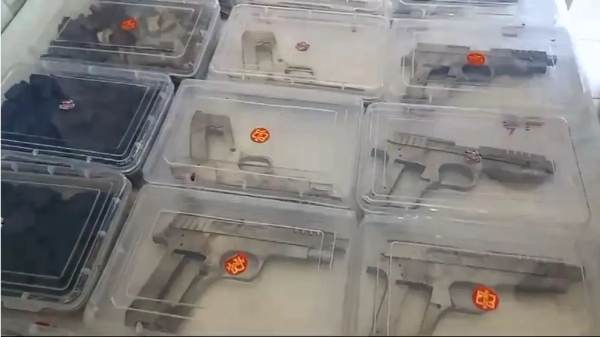 मेरठ पुलिस ने अवैध शस्त्र फैक्ट्री के अंदर 13 पिस्टल निर्मित व अर्धनिर्मित बरामद करते हुए अन्य सामग्री भी बरामद की है। (1)- मैंगजीनः- 436, (2) ड्रिल मशीन (इलैक्ट्रिक)-01, (3) ग्रेण्डर किट-02, (4) मैंगजीन शूः 02 पैकिट, (5) बर्नियर कैलिबर- 02, (6) ग्रेण्डर टूल किट छोटी 05, (7) ट्रेगरः 140 $ 146 दो डब्बे, (8) मैंगजीन लाकः 01 प्लास्टिक डिब्बा, (9) ड्रम- 01 डिब्बा, (10) मैंगजीन बाटमः 1 डन्क, (11) बट की लकडीः 39 जोड़ी, (12) स्प्रिंगः 04 (छोटे बडे़), (13) सिकन्जेः 04, (14) फायरिंग पिनः 01 डिन्क है।