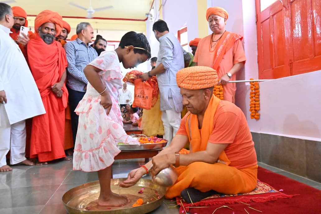 बेटियों के पांव पखार सीएम योगी ने की मातृ शक्ति की आराधना